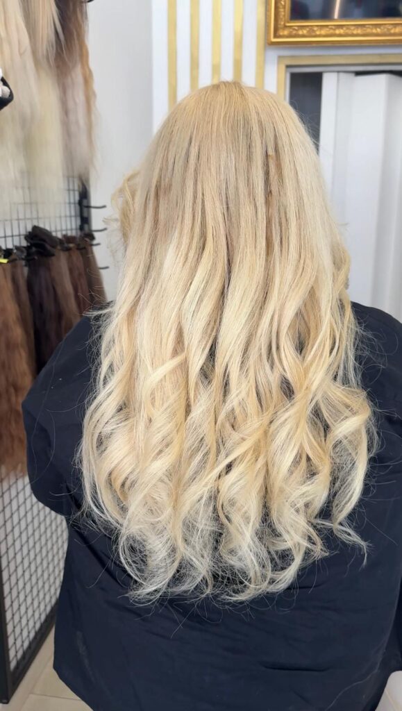 Professionelle Haarverlängerung in Wien mit modernen Methoden wie Keratin, Tape Extensions und Microringen.